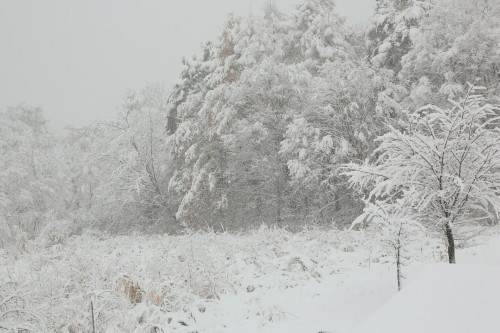 暖秋に大量の雪が降ってきました。紅葉の中にチラホラ降る雪は自然風景の色彩を強めるのでカメラマンの大好き風景なのですが、大量雪はあたり一面をモノトーンの世界に変身させ、風景は突然に初冬です。