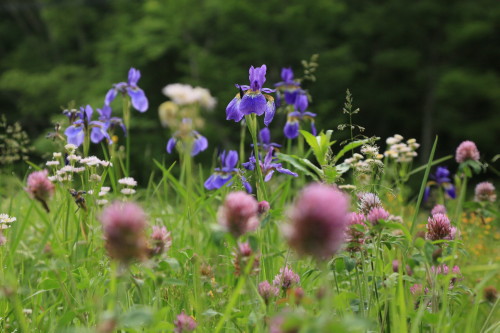 梅雨の裏磐梯で咲くヒオウギアヤメは都市の「菖蒲園」等での観賞用に育てられているわけではなく、野草として自生しているので、雑草に紛れていることも有ります。 この花は観賞用に他所から移植されたアヤメの様な派手さはないのですが、楚々とした気品がありますナ。 観賞用に他所から移植された外来種の花々も、種が飛んで自生し繁栄しているものもありますし、人間が持ち込んだ魚等もあり、最近は外来動植物に在来動植物の存在が脅かされることが有りますヨ。