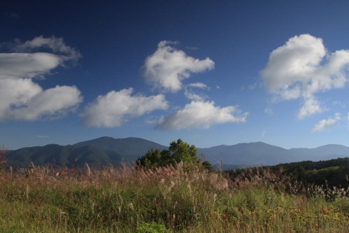 9月は不安定なお天気の日が多いですが、たまにお天気になると気持ちが良い日が有ります。お天気の良い日に、ススキ原へ行きました。青空の中を雲が流れております。まるで雲が行進している様でありましたヨ。