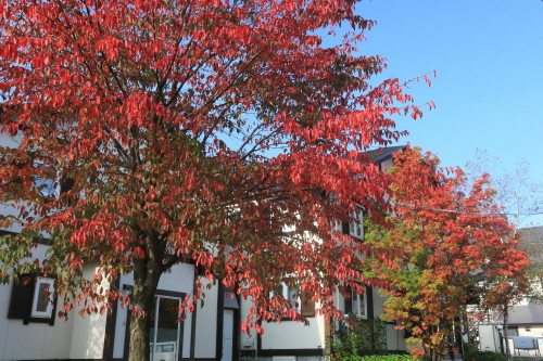 ペンション前のオオヤマザクラやナナカマドが『今年はきれいに』紅葉しました。『今年はきれいに』とかっこでくくったところがミソでして、紅葉は毎年同じ時期に、同じ様には色づかないのです。昨秋、ペンション前のオオヤマザクラとナナカマドはきれいな紅葉ではありませんでした。