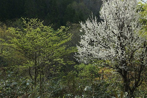 オオヤマザクラが咲き終わると、スモモの白い花が目につきはじめます。オオヤマサクラ程派手ではないけれど、白く輝く姿はなかなかの存在感です。毎年ではないのですが、桃というよりは杏の様な小さな実がなります。
