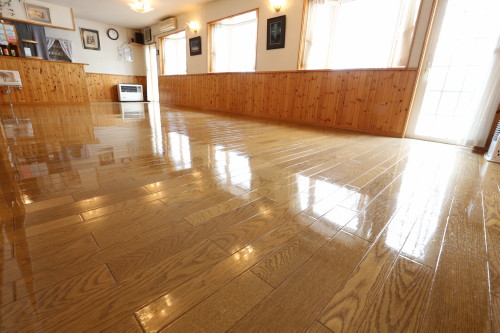 暖かな日が続いて雪はどんどん溶けてきていますが、残雪はまだまだ沢山あります。雪解けの風景を横目に、この一週間は、ペンションのワックス塗りに追われました。家具をすべて片付けて、床の表面の汚れをリンバーで取り除き、汚れとリンバーをふき取り、その後にワックスの数回重ね塗りをする作業をいたします。もう20年、毎年行っております。20年間も毎年このような作業を行っているペンションは多くはないと思います。お客様からは、どうしたらレラのようにきれいな建物を維持できるのかのお尋ねがありますが、ワックス塗りを含め、このような地味な作業に労力と時間と費用を惜しまないということなのだと思いますネ。この様にシーズンオフはペンションの様々な裏方仕事をしまして、皆様をお迎えする準備を致しておりますヨ。