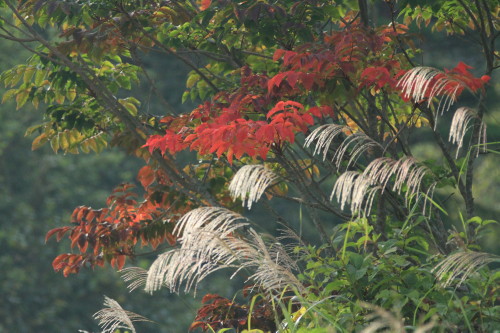 この数日お天気の日が多く、すなわち放射冷却で朝方冷え込んだ日もあり、其のせいか、ウルシやツタウルシの紅葉が進みました。今夏は異常なくらいに暑い日が多かったので、秋の来るのも遅くなるのではないかと心配していたのですが、ツタウルシ紅葉はむしろ昨年より早いくらいなのです。