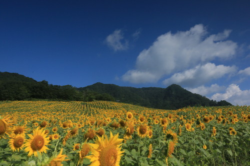 地元ローカルテレビで、隣町喜多方市の三ノ倉スキー場のヒマワリが満開とのニュースを放映していましたので、先日様子を見に行って参りました。今年の天候不順は夏野菜ばかりではなく、全ての植物に悪影響を与えずにはいられなかった様です。ヒマワリの花の咲き方は昨年より芳しくはありませんでした。それでも青空の元での広いヒマワリ畑は気持ちを広く致しますネ。