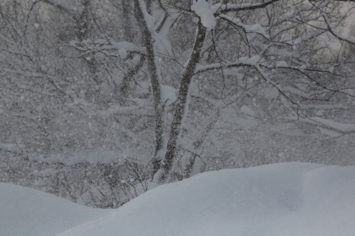 9日の土曜日だけが、良い天気でしたが、その前後は毎日雪であります。「しんしん」と降るのではなく、「こんこ」と降るのでもなく、「ゴンゴン」と音が聞こえそうなくらいに降っております。先日の雨で、減った積雪もたちまち回復しています。雪の日には独得の風情が有るのでシャッターチャンスです。どなたですか?雪の撮影をするよりも、雪見温泉や、雪見酒のほうがいい等と言っておられるのは。