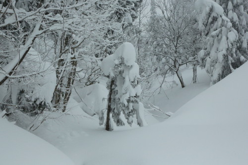 大都会で十数センチの雪が降り、道路機能がマヒしているとTVが放送していた頃、裏磐梯も数十センチ大雪が降り、除雪車がフル稼働をしていました。ペンションでもオーナーがホイールローダーで終日除雪作業に追われておりました。その頃、風の当たる森の中では、樹氷が出来るほどに吹雪いておりましたヨ。都会で雪が降ると、裏磐梯では樹氷が出来ると言う事ですかね。
