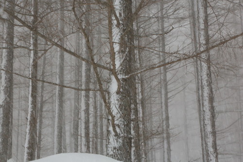 週末数日は大雪でありました。毎日除雪に追われておりましたネ。吹雪くことは少なかったのですが、絶え間なく雪が降り続け、雪のカーテンが空から落ちている様でしたナ。
